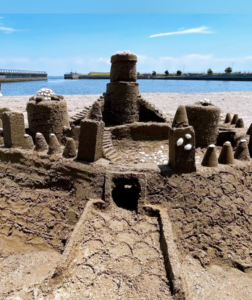保育科の学生による本気の砂遊び。道具は不要です。大人も子どもも一緒に作って楽しみましょう!