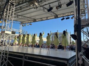 森の中のような、木々に囲まれたイベント広場のステージで、青空の下、貴重な万博でのライブはとっても楽しい経験でした。万博や大阪の空気からたくさんの元気をいただきました。