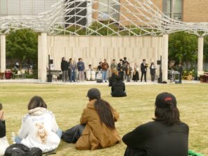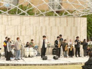 10月29日(水)の昼休みに、くりゼミが秋の訪れを感じるThe Lawn 音楽堂にて野外コンサートを開催しました。