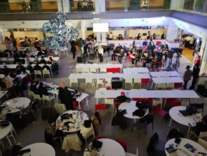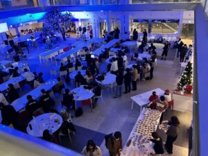 2025年度のStudent Live at Cafeteria MUSE 第35回を12月16日(火)に開催しました。音楽大学イベント実行委員会主催の「クリスマスパーティ2025」では、軽食を楽しみながらロックやジャズの学生バンドの演奏を聴いたり、「ディズニーペアチケット」が当たるビンゴ大会などを通じて、多くの学生が楽しいひとときを過ごしました。