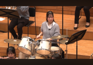 このコンサートは、幼稚園教諭・保育士を志す本学1年生が、日々、保育者になるための理論や技術を学びながら、「こどもをまんなかに」音楽や表現を共に楽しむ経験をどのように実現するかを、クラス単位で創意工夫し、本番を迎えました。冒頭には、本学の選択科目の一つである「ウィンド・バンド(吹奏楽)」の履修学生による演奏を披露しました。