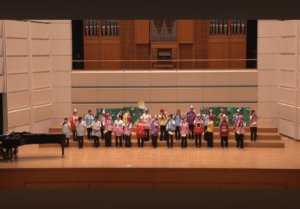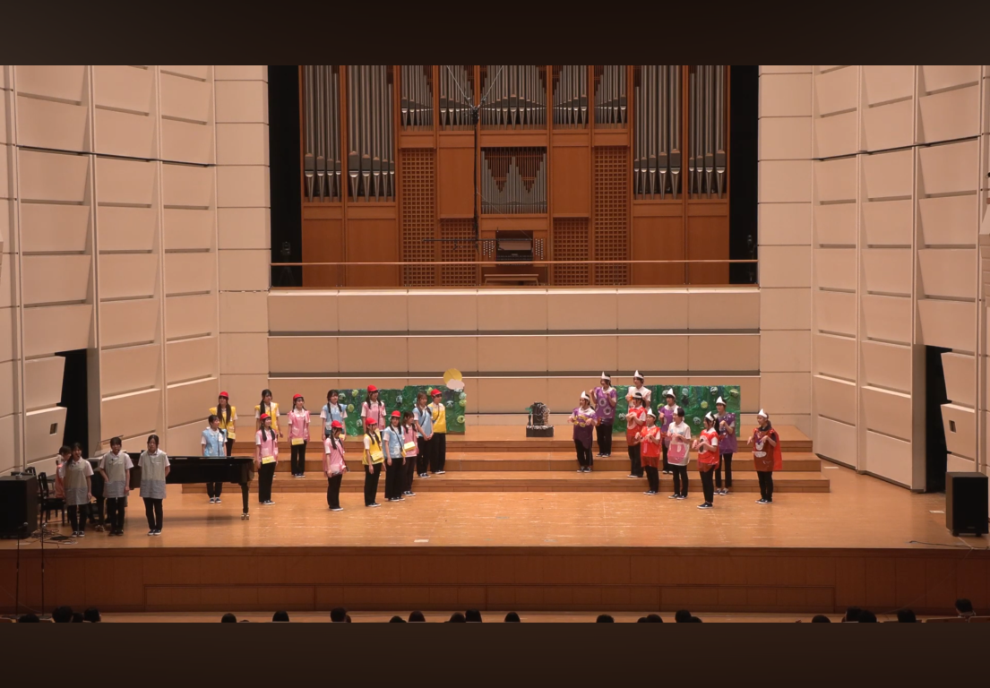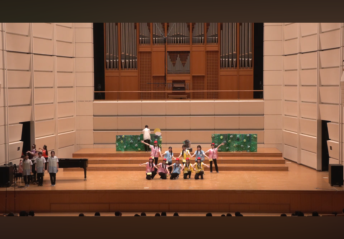 このコンサートは、幼稚園教諭・保育士を志す本学1年生が、日々、保育者になるための理論や技術を学びながら、「こどもをまんなかに」音楽や表現を共に楽しむ経験をどのように実現するかを、クラス単位で創意工夫し、本番を迎えました。冒頭には、本学の選択科目の一つである「ウィンド・バンド(吹奏楽)」の履修学生による演奏を披露しました。