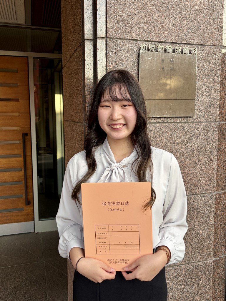 子どもが「自分でできた」という気持ちになれるような援助を行い、できた際には一緒に喜んだり、褒めたりすることの大切さです。小さな成功体験の積み重ねが、子どもの意欲の向上や達成感に繋がるのだと学びました。②実習先の先生からいただいたアドバイス
